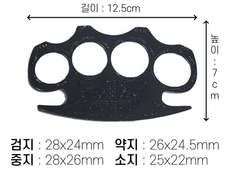 용으로 가지고 다니기가 편한 장점이 있습니다. 굵고 튼튼하기 때문에 호신용 너클을 손에 낀 채 펀치를 하면 펀치의 위력도 강해지고 손도 보호 할 수 있는 장점이 있습니다.