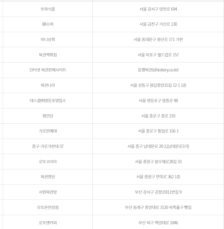 | 2 | 영광생활유통 | 서울 금천구 | 복권판매점지도보기 | 자동 |
